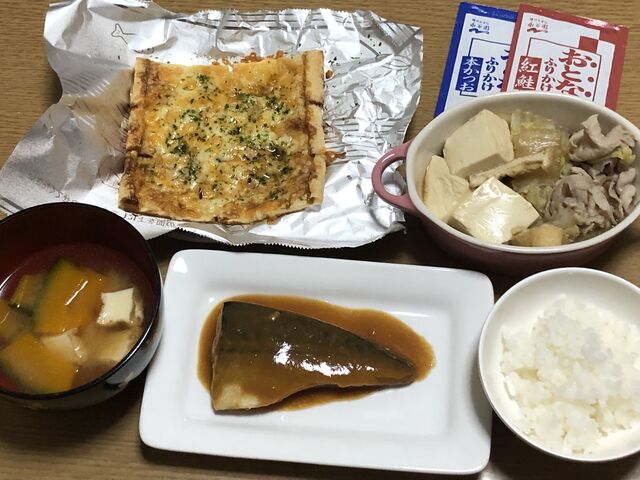 ・鯖味噌・煮物(豚肉、白菜、豆腐、薄揚げ)