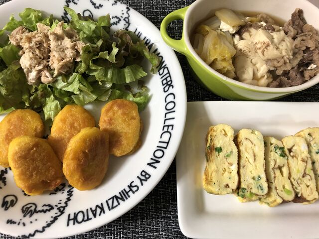 ・ナゲット&ツナサラダ・すきやき煮・ネギ入り出し巻き