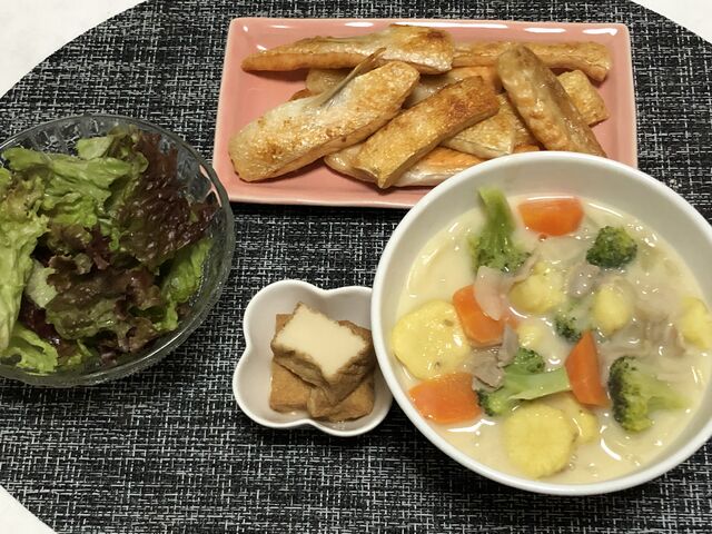 ・クリームうどん・焼ハラス・レタス・厚揚げ煮
