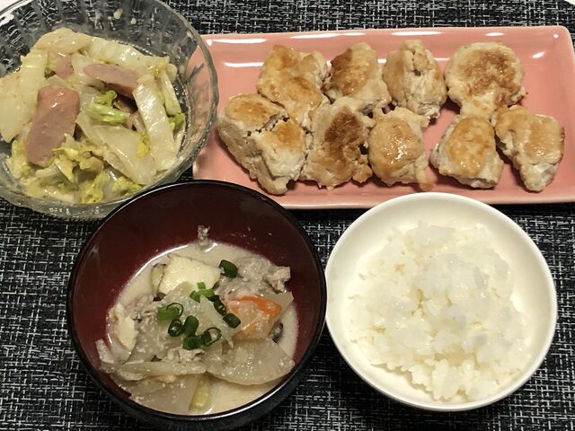 ・やきあげくん・ウインナ白菜炒め・粕汁(最後)・ご飯