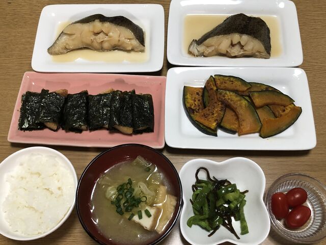 ・カレイの煮付け・長芋磯辺焼き・カボチャ焼き