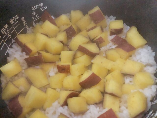 朝から、さつま芋ご飯を炊いたんです。