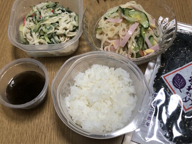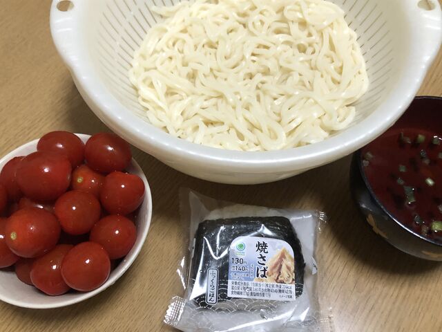 流水麺(うどん)とコンビニおにぎり買って帰りました。
