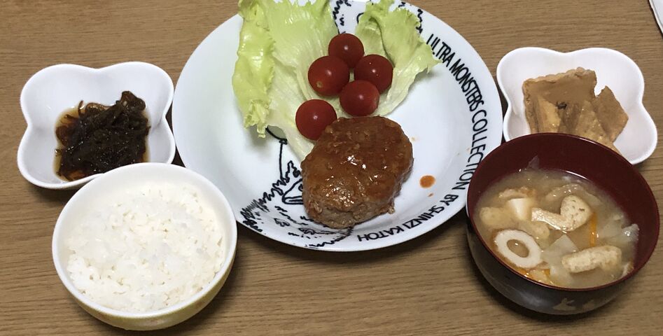 今日はハンバーグの残りで晩御飯!