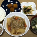 (豚)肉じゃが、小松菜煮浸し、かぼちゃ煮