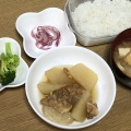 千切り大根サラダ、水菜の味噌汁、ご飯