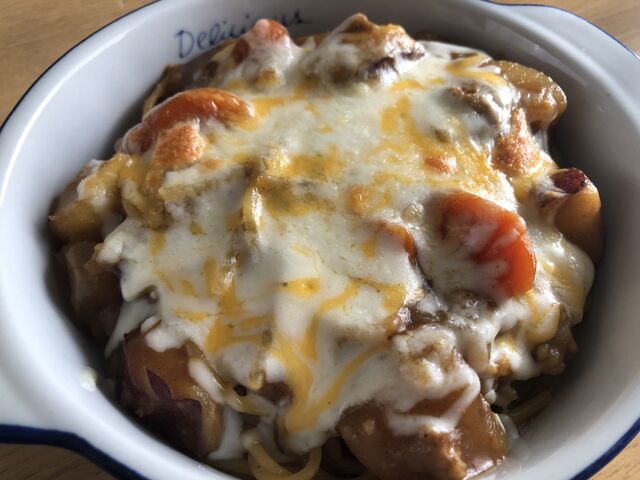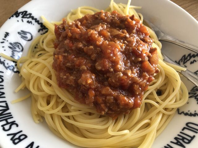 お昼にミートソースのスバゲッティ