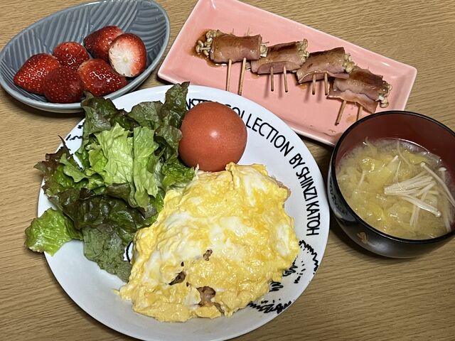 オムライスとエノキベーコン巻きー。